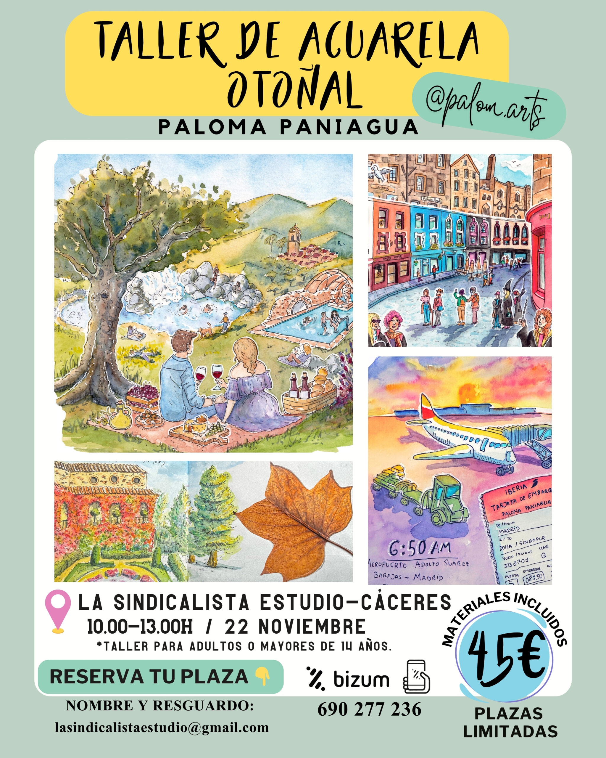 ¿Te apasiona la acuarela o estás buscando iniciarte en este arte? El próximo 15 de febrero, acompáñanos en La Sindicalista Estudio (Calle Roso de Luna, 15, Cáceres) para un taller diseñado para disfrutar y aprender.